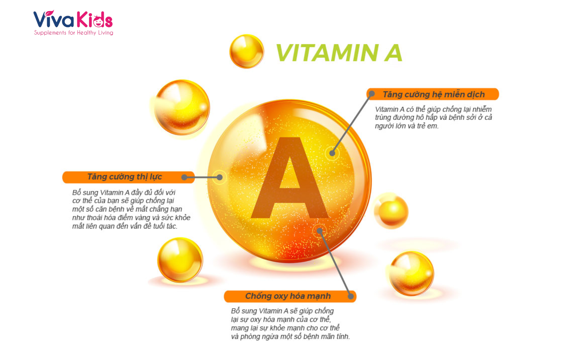 Vitamin A không chỉ tốt cho mắt mà còn hỗ trợ hệ miễn dịch, giúp cơ thể bé chống lại các bệnh nhiễm trùng, đặc biệt là ở mắt, da, và hệ hô hấp.