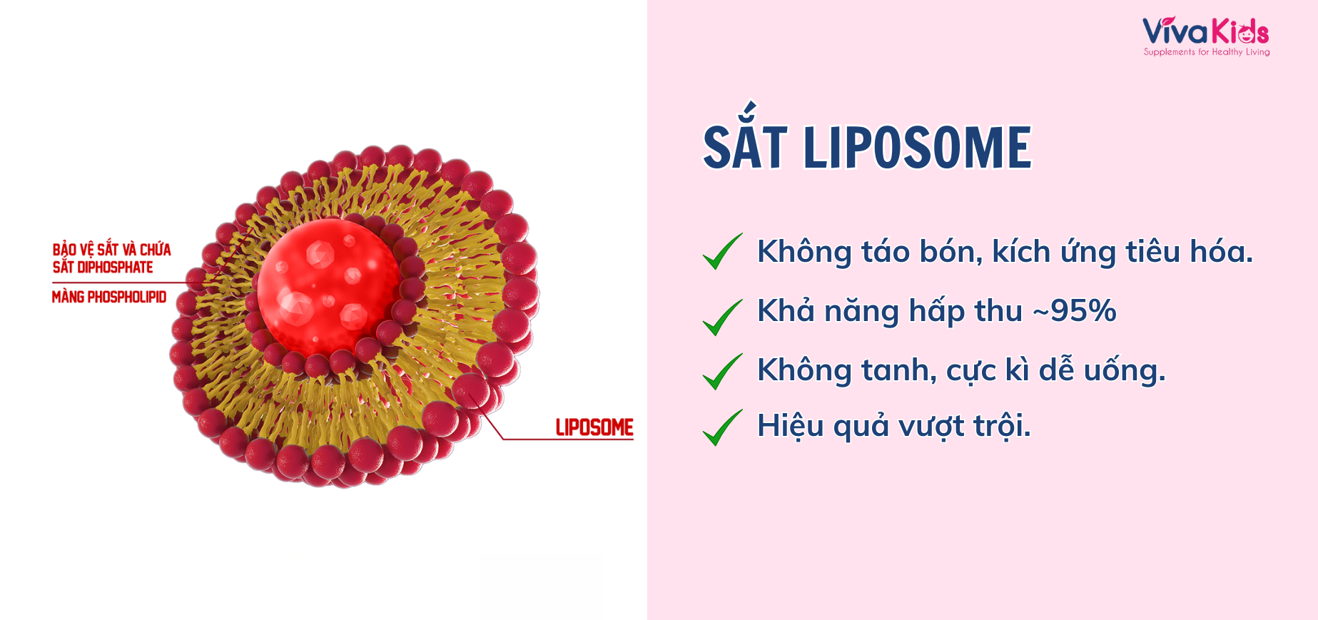 Sắt liposome có khả năng hấp thụ cao hơn hẳn so với các loại sắt vô cơ và hữu cơ khác, giúp cơ thể bé tận dụng tối đa lượng sắt được cung cấp mà không bị đào thải ra ngoài.